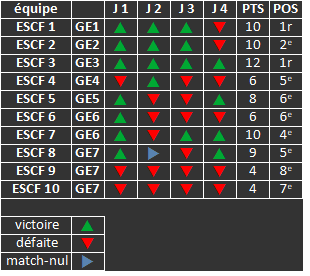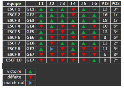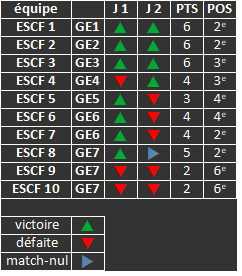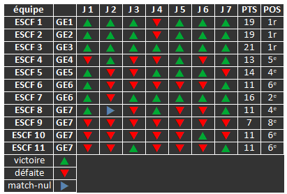 | 10 | GE7 Poule 15 | calendrier | samedi à 16h00 |